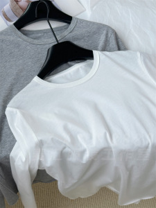 北美匹马棉 静奢休闲四季百搭圆领卷边长袖上衣薄款防晒T恤女