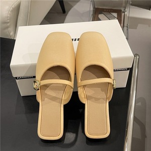 新しい韓国スタイルのフレンチトゥトゥスリッパ、女性用夏アウターレイジーレトロミュラーカジュアルフラットハーフスリッパシューズ