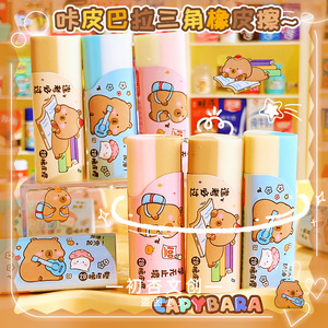 カピバラ三角消しゴム サンドイッチ三角消しゴム 一拭きで線が描ける かわいいカピバラ消しゴム クロスボーダー文具