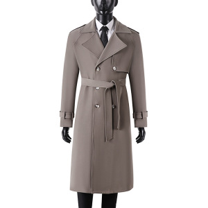 英国風ラペルロング大きいサイズルーズコートメンズウインドブレーカーメンズ韓国風高級ハンサム膝丈肩パッドコート
