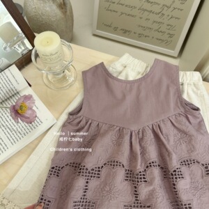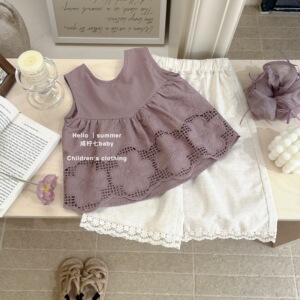 Xianlingqi丨女の子夏服 2025 新しい子供のノースリーブベストベビーシャツベビーパンツスーツ 2 点セット