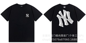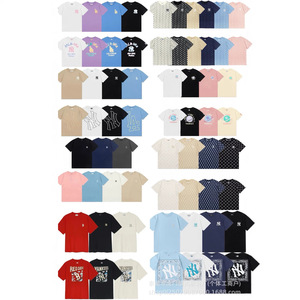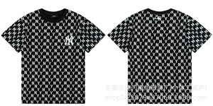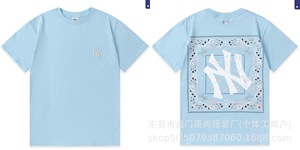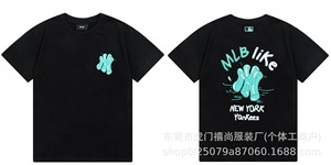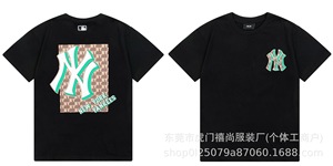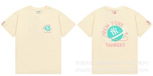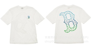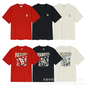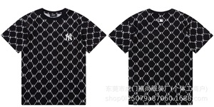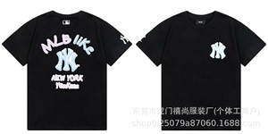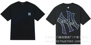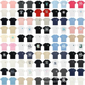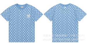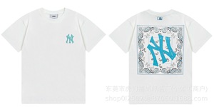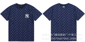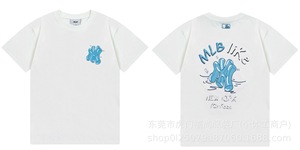 クロスボーダー25ss刺繍MLB春夏全面プリントロゴ半袖男女兼用ゆったりカジュアルTシャツ純綿快適