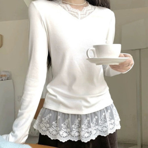 蕾丝打底衫女韩版新款小个子内搭高级感秋冬长袖气质白色上衣