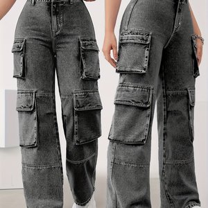 カジュアル ジーンズ 高弾性 プラス サイズ レディース ジーンズ ディープ グレー