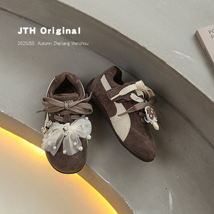 2025 秋の新韓国スタイルの女の子の道徳訓練靴レースのリボンレトロフォレストシューズ中型および大型子供用カジュアルシューズ