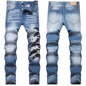 新しいスポットスプラッシュインクプリントパープルビューティートレンディハイストリートレトロカジュアル個性トレンドメンズデニムパンツ