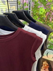 高級感のある小振り袖、人気の半袖レディース夏スタイル、年齢軽減ラウンドネック、右肩Tシャツトップス、気質と多用途