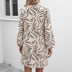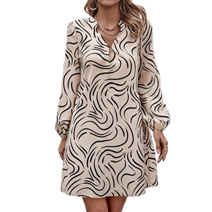 2025 夏クロスボーダーヨーロッパとアメリカのアマゾンファッション新しい女性のプリント長袖 V ネックドレス工場卸売