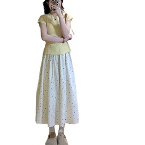 水玉模様のスカート レディース 夏 2025年新作 韓国風 ハイウエスト 股間をカバー 着痩せ効果 フレンチスタイル Aライン パラソルスカート ハイウエスト 着痩せ効果