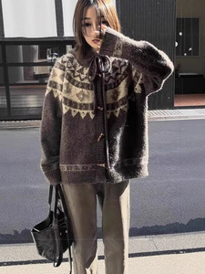 レトロなレイジースタイルの女性用フード付きセーター、秋冬の新しいデザイン、単列ホーンボタンの厚くて暖かいニットトップ