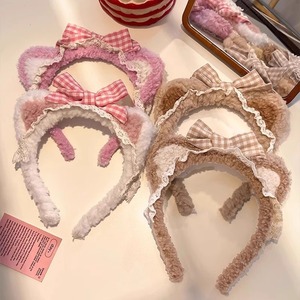 秋と冬のかわいいリボンクマ耳ヘアバンド女の子多用途ぬいぐるみヘアピン滑り止めヘアバンドヘッドバンド