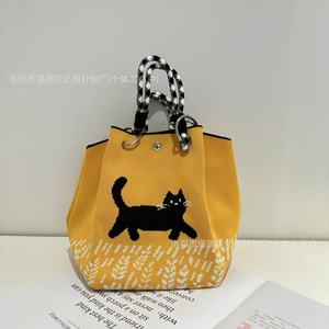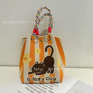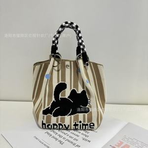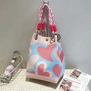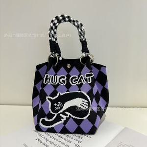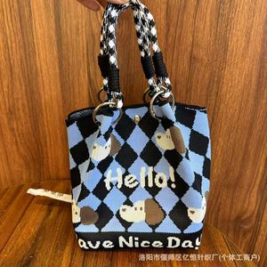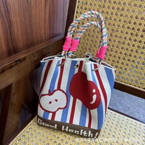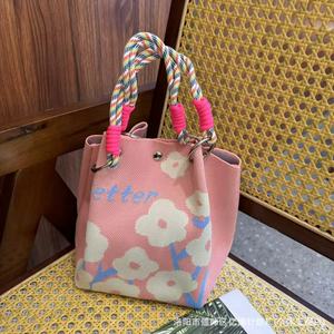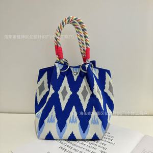 ニッチデザインニットハンドバッグトートバッグエスニックスタイルファッショナブルで多用途な大容量ニットショルダーハンドバッグ