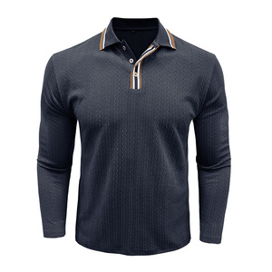 国境を越えた貿易紳士服秋と冬のメンズ長袖ウールビジネスポロシャツアマゾンジャカードラペルTシャツトップ