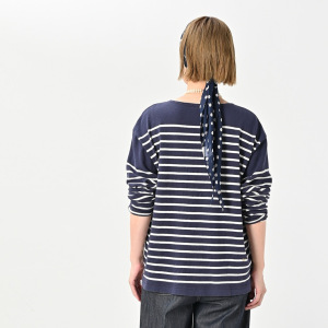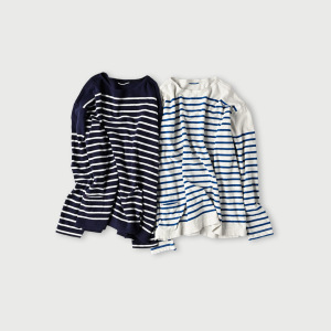 日本と韓国の新しい万能通勤レトロシンプルバスクエッジ45Rフロントポケットスプライシングストライプ7分袖T