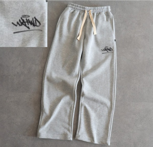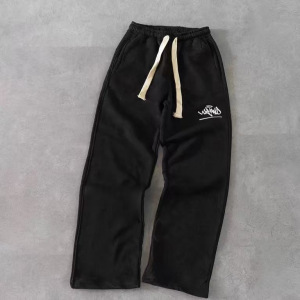 クロスボーダー 2025 新しい人気の線画英語白巾着ワイドレッグパンツ白黒ティーンエイジャー卸売パンツ