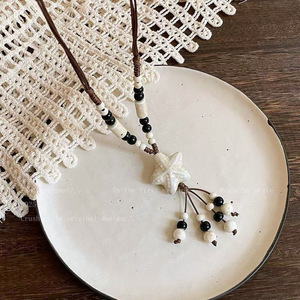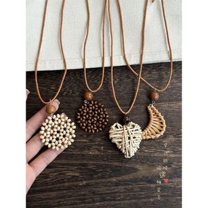 女性用のレトロな編み込みラブペンダントネックレス、夏のスカート、ロングセーターチェーン、日常の多用途学生パーティーアクセサリー