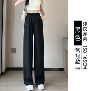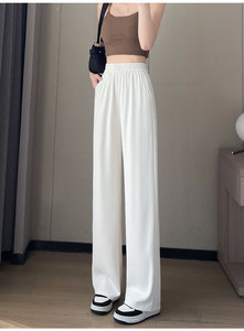 2025 夏アイスシルク薄型ナローワイドレッグスーツパンツ女性の夏のハイウエストルーズカジュアル痩身ドレープストレートパンツ