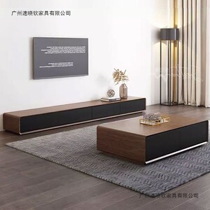极简地柜电视柜胡桃色小户型网红客厅卧室超窄全实木落地整装地台