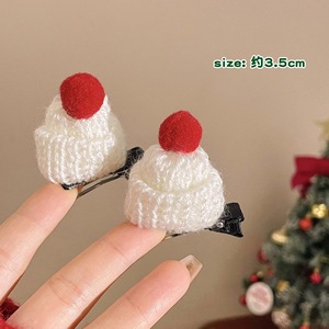 クリスマスチェリーぬいぐるみヘアピン女性のサイド前髪クリップかわいいクリスマス帽子カモノハシクリップヘアピンヘアアクセサリー