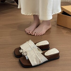 法式套趾褶皱拖鞋女夏外穿2025新款高级感不累脚凉鞋坡跟气质凉拖