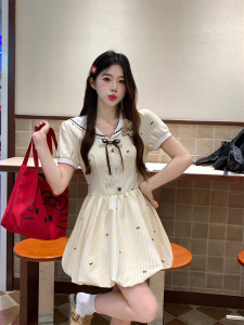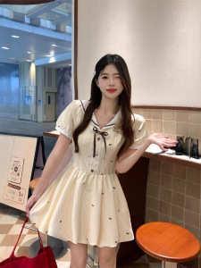 プラスサイズの女性の少し太ったmm甘いスタイルの黄色のドレス女性の夏の年齢を減らす花のつぼみのショートスカート