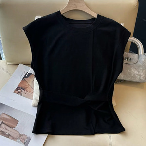 夏の新スタイルフライングスリーブピンチウエストツイストヘムスリットTシャツスリムでファッショナブルで多用途な女性用TシャツA4182