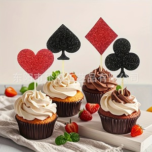 ケーキデコレーション カジノ ポーカー テーマ カップケーキインサート グリッターペーパー ベーキングケーキ旗インサート インサートカード 甘い