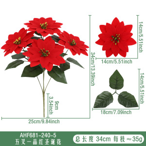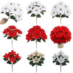 クロスボーダークリスマスポインセチア造花ブーケクリスマスシーンレイアウトホームデコレーションオーナメント造花卸売