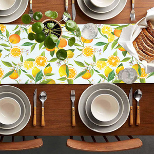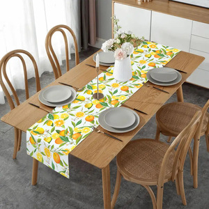 亚马逊新款清新柠檬印花桌旗美式热销亚麻桌布客厅茶几餐桌桌垫