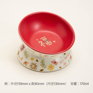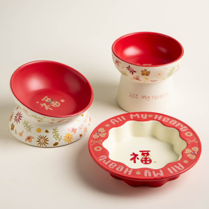 喜庆福字猫碗陶瓷碗猫食盆猫咪狗狗搬新家饭碗喝水碗一体宠物用品