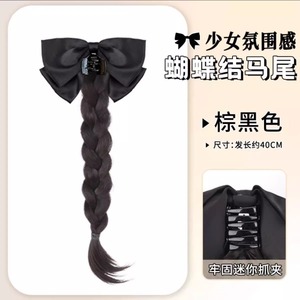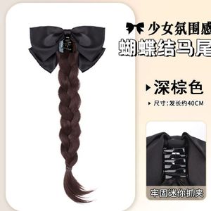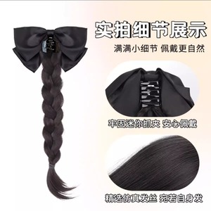 蝶結び三つ編みポニーテールクリップオンハイポニーテール巻き毛新しい中国風三つ編みナチュラルシミュレーションヘアウィッグポニーテール