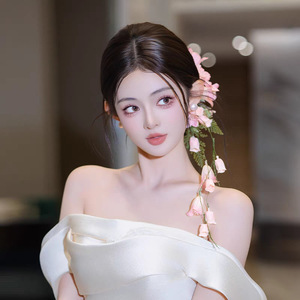 フォレストスタイルの手作りロマンチックなピンクの花嫁模擬花ヘアアクセサリー超妖精甘いウェディングドレスアクセサリー年齢を減らす帽子