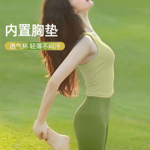 ヨガウェアセット 高級感 女性用 裸感 細見え プラティ フィットネス スポーツベスト トップス トレーニングウェア 夏用