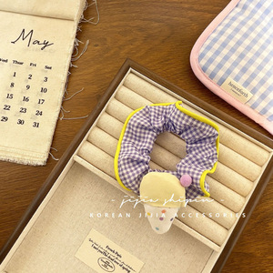 楽しい漫画の立体人形腸ヘアリングかわいいチェック柄子猫子供用腸リング多用途女の子ポニーテールヘアロープ