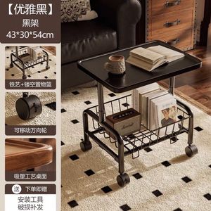 リビングルームと寝室の可動トロリークリームスタイルの家庭用シンプルな小さなコーヒーテーブル車輪付き収納ラック小さなテーブル
