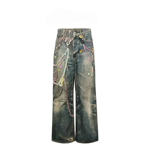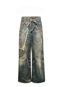 ソウルオートクチュール~ジェニー同風キャンディチェーン3Dプリントジーンズレディースゆったりトレンドシミターワイドパンツ