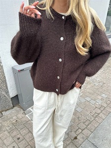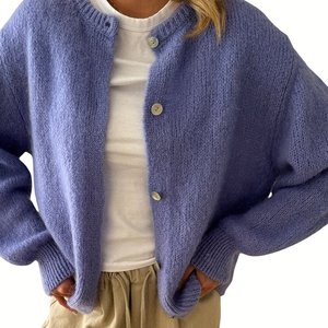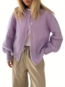 レディース ソフト ニット カーディガン ライトパープル 長袖 ボタン