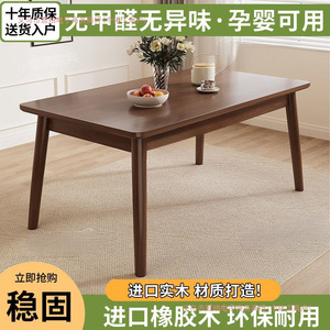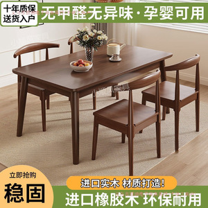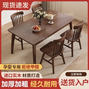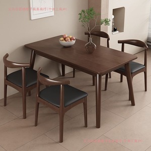 2025新款北欧胡桃色实木餐桌家用组合小户型简约长方形吃饭桌子