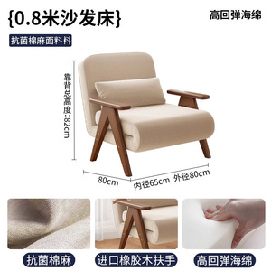 实木胡桃色沙发床客厅可折叠两用单人沙发日式多功能小户型折叠床