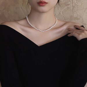 ファッショナブルでシンプルな2mmの真円度の強い光のシェルビーズネックレス3-4MMのシェルビーズ鎖骨チェーンは、ガールフレンドに高級ネックレスを贈ります。