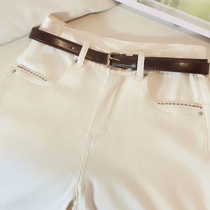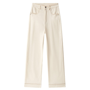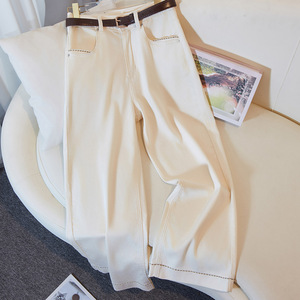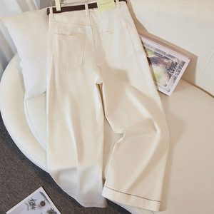 妙臻天丝米白色绣花夏季牛仔裤女小个子显瘦九分裤阔腿裤爆款3315