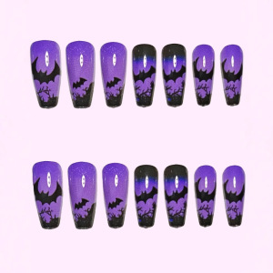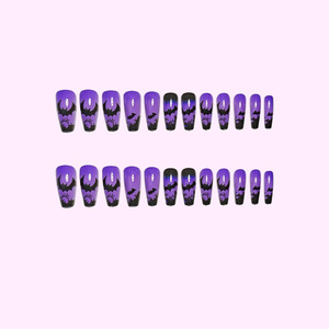 ハロウィンバレエスタイルダークナイトフルムーンエレガントカボチャの花びら樹脂ウェアラブルネイルリムーバブルマニキュア24個