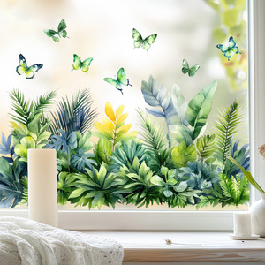 Aike JD3630 クロスボーダー新トロピカルグリーン野蝶ステッカーウィンドウステッカーレストランガラスドアと窓の装飾静電ステッカー