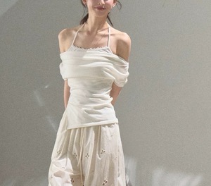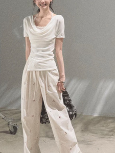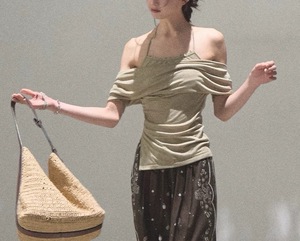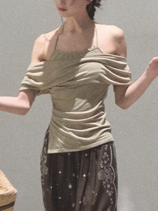 OAKMO/「砂漠の拡張」リヨセルスイングカラー痩身・肉感ウエスト・肌に優しいワンショルダートップスTシャツ