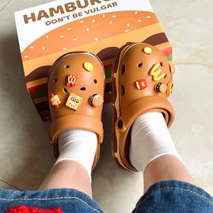 下駄アクセサリー、立体ハンバーガー、面白いチーズトースト、DIY靴花アクセサリー、取り外し可能