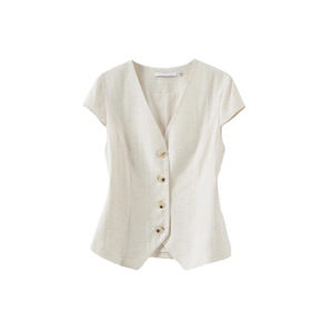 リネンスーツベストレディース2025新作薄手夏アウターカジュアル年齢軽減肉カバー半袖ベストベスト