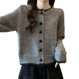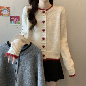 セータージャケット女性のための 2025 秋と冬の新しいデザインカラーブロックラブボタンニットカーディガンショート長袖トップ