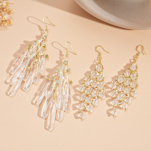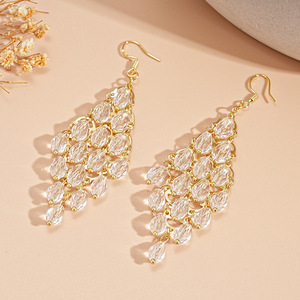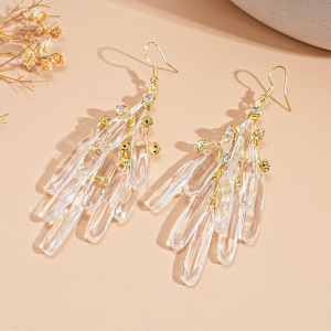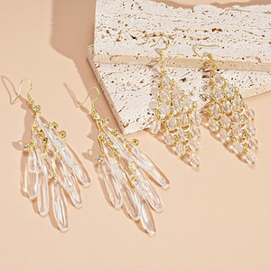 エレガントなガラスクリスタルダイヤモンドがちりばめられたアクリルウォータードロップタッセルイヤーフックヨーロッパとアメリカのパーソナライズされたニッチな気質の女性用ハイエンドイヤリング