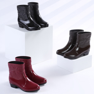 新しい韓国スタイルのレインブーツ女性のアウターミッドレインブーツ PVC 滑り止め屋外防水ゴム靴ファッション大人のウォーターシューズ