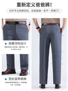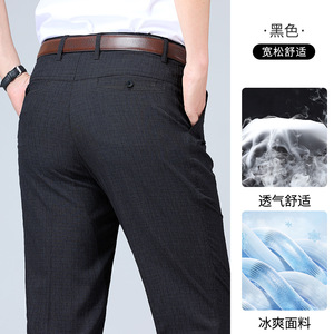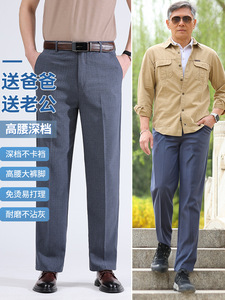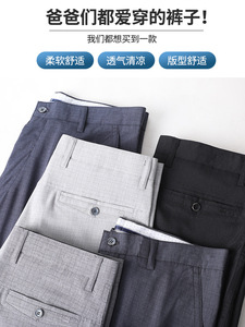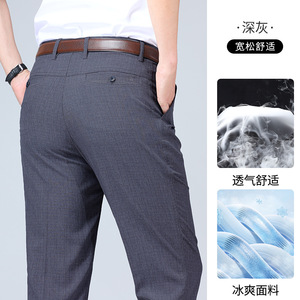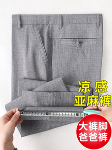お父さんパンツ、涼しい夏用薄手ハイウエスト深股パンツ、高齢者向けアイスシルクリネンカジュアル中高年男性パンツ